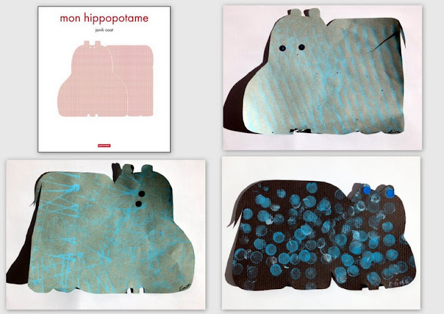 Le mot de l'éditeur : Gros et rouge, stylisé, voici mon hippopotame. À chaque page, il se transforme, change de couleur ou disparaît pour exprimer tout et son contraire. Grand, petit, fin, épais, plein, vide, opaque, transparent, léger, lourd, doux, rugueux… C’est un vrai caméléon, cet hippopotame ! Un tout-carton géant qui invite à découvrir les mots et à connaître les contraires. Janik Coat joue sur l’échelle, le point de vue, les couleurs et exploite avec beaucoup d’ingéniosité les différentes formes et représentations de l’hippopotame. Elle parvient avec humour et intelligence à rendre expressif ce personnage pourtant immobile et muet : l’hippopotame devient à lui seul un véritable dictionnaire graphique. Un remarquable travail d’illustration, tout en finesse et simplicité.